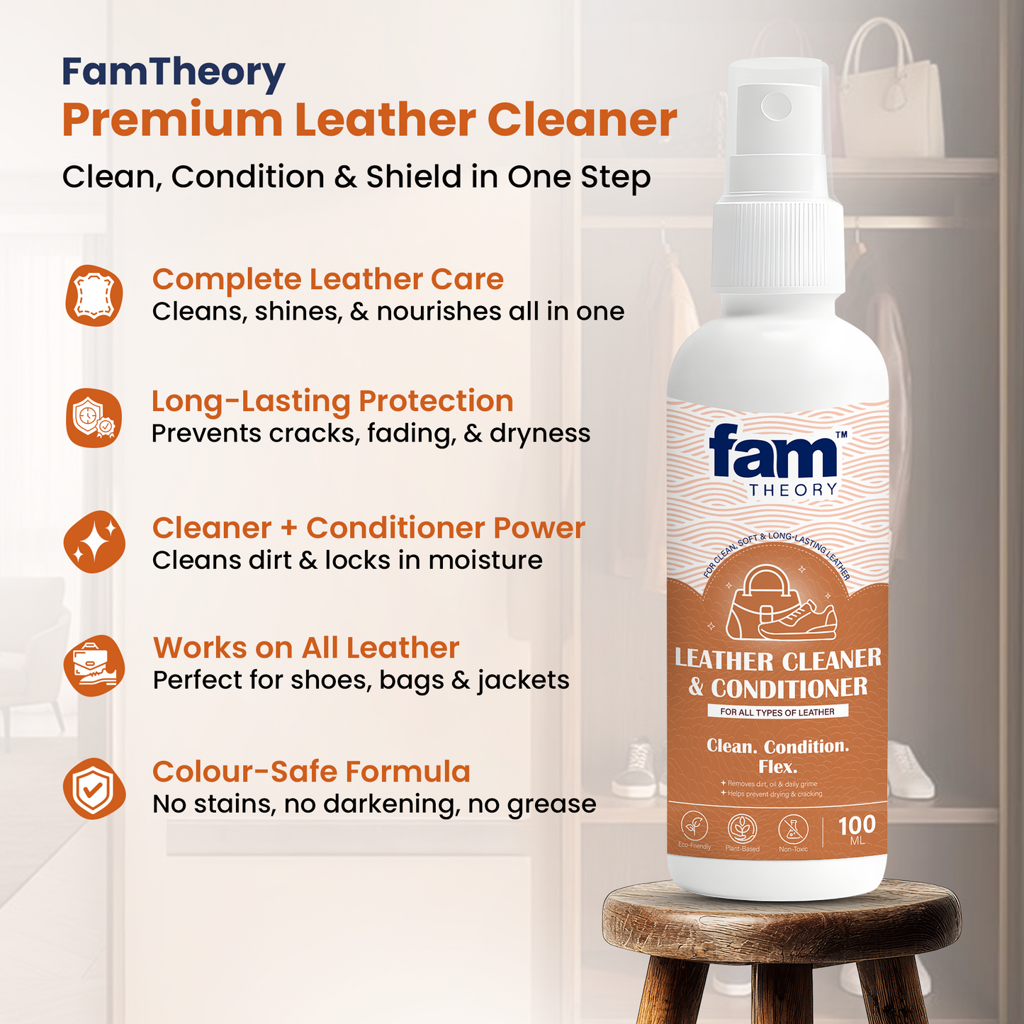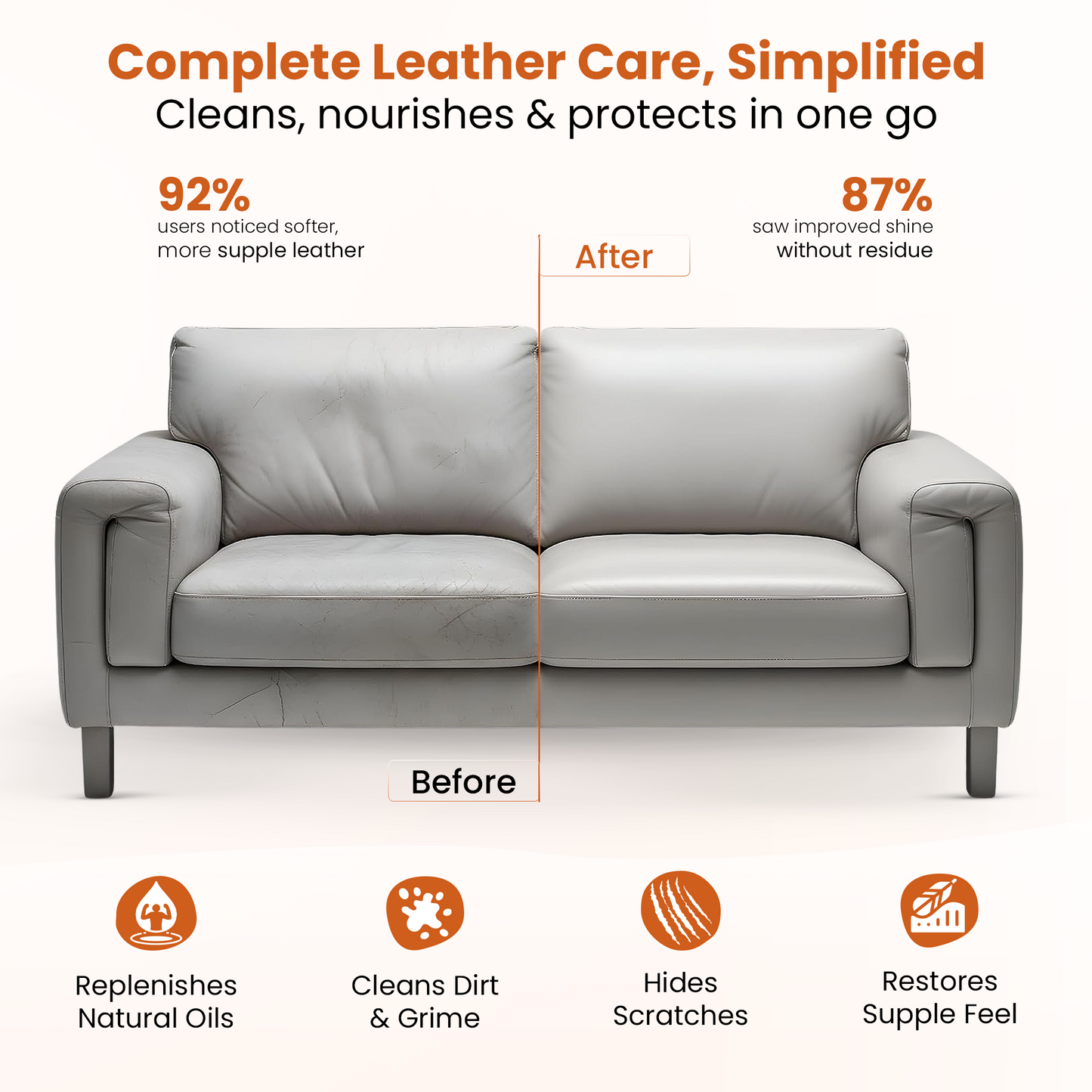 Cleans & conditions leather