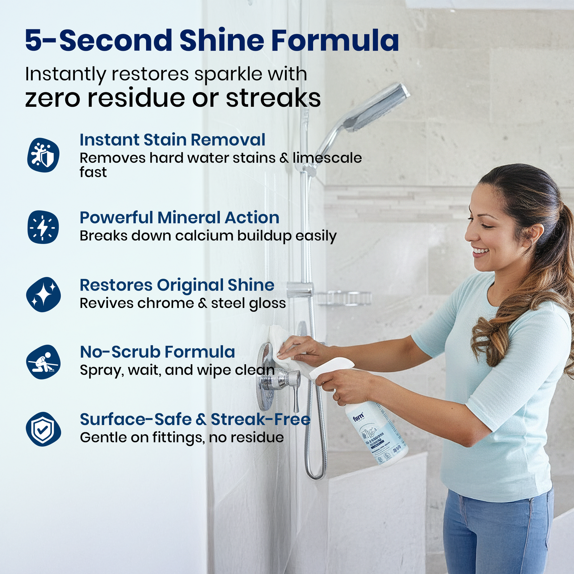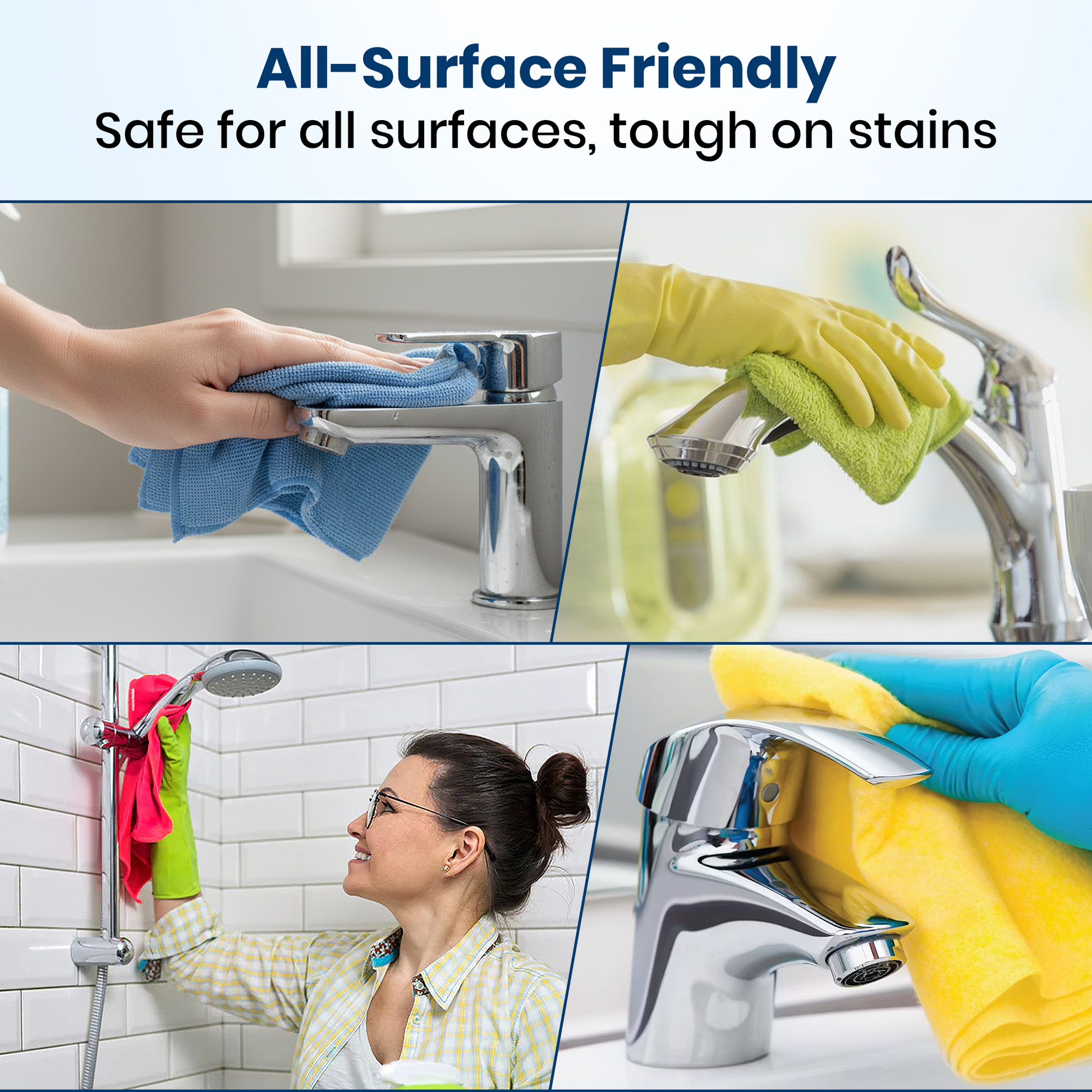 Highly recommended ! removes hard water stains effortlessly in all hardware & bathroom items offers great value for money and is completely safe for children because it is natural